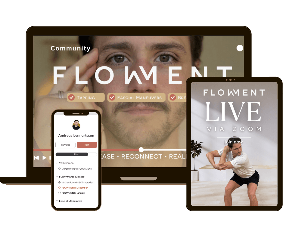 Växande videobibliotek: Tillgång till ett ständigt växande bibliotek med FLOWMENT-sessioner som du kan använda när och hur det passar dig – korta resetar, längre pass och guidning för olika behov.